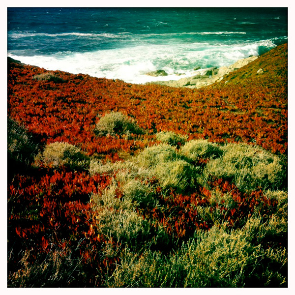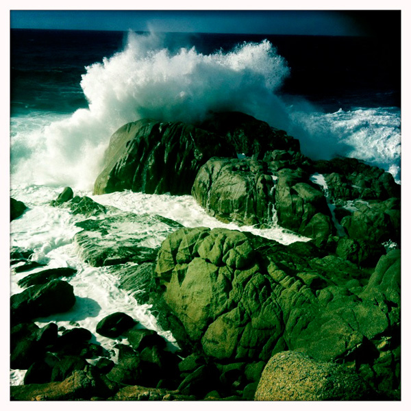 Au bout du monde tout est à la fois beau et menaçant, les cailloux ne sont pas pareils, le désert est plus sec, les maisons plus abandonnées, la mer plus effrayante et violente, plus qu’ailleurs et, même au bord, les rochers deviennent bizarres, torturés par de mystérieux intervenants, les plantes se hérissent, les carcasses rouillent moins vite dans le temps figé par le beau temps, l’herbe devient sanglante, les vagues se creusent vicieusement pour vous emmener en promenade chez les sirènes, ne vous baignez jamais au bout du monde, c’est plein de lutins malins qui déposent la nuit des signes mystérieux sur les plages pour que les soucoupes volantes atterrissent, Rockwell n’est jamais loin, les habitants ont tous disparus, les caravanes sont vides, les palmiers palmisent et le chemin oublié vous emmène vers la vieille mine abandonnée dans la montagne, pleine de fantômes ouvriers et d’ombres vives…